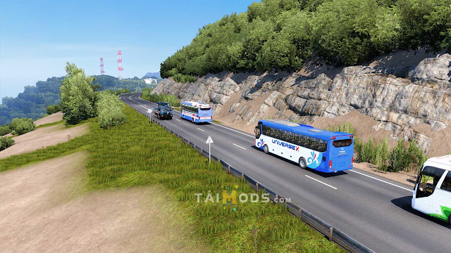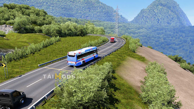 Tiêu biểu nhất là những cung đường Tây Bắc đầy nguy hiểm khi di chuyển từ Điện Biên về Hà Nội. Sau đó đường dẫn tiếp tục từ Hà Nội về tận Đà Nẵng siêu đẹp. Kết thúc bản đồ sẽ di chuyển từ Đà Nẵng qua cung đường 14B đi về Buôn Mê Thuột với địa hình cao nguyên siêu đẹp. Giúp bạn làm được những nhiệm vụ để đón trả khách để kiếm thêm tiền & kinh nghiệm trong game ETS2. Bản Đồ Việt Nam (1) – Miền Bắc gồm một đường nối các tỉnh, thành phố, địa danh sau: Điện Biên, Sơn La (Hát Lót), Mộc Châu, Hòa Bình, Hà Nội, Phủ Lý, Ninh Bình, Thanh Hóa, Nghệ An (Vinh), Hà Tĩnh, Quảng Bình (Đồng Hới), Quảng Trị (Đông Hà), Thừa Thiên Huế, Đà Nẵng, KonTum, Gia Lai (Pleiku), Đắk Lắk (Ea H’Leo, Buôn Mê Thuộc)