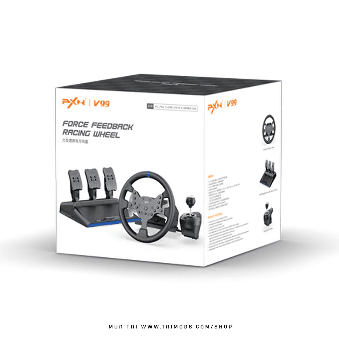 Vô Lăng Chơi Game PXN V99 – Vòng Quay 900 Độ, Kèm Hộp Số & Bàn Đạp Kim Loại